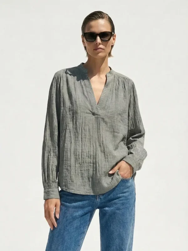 PALMA RUFFLES SHIRT | ירוק בהיר