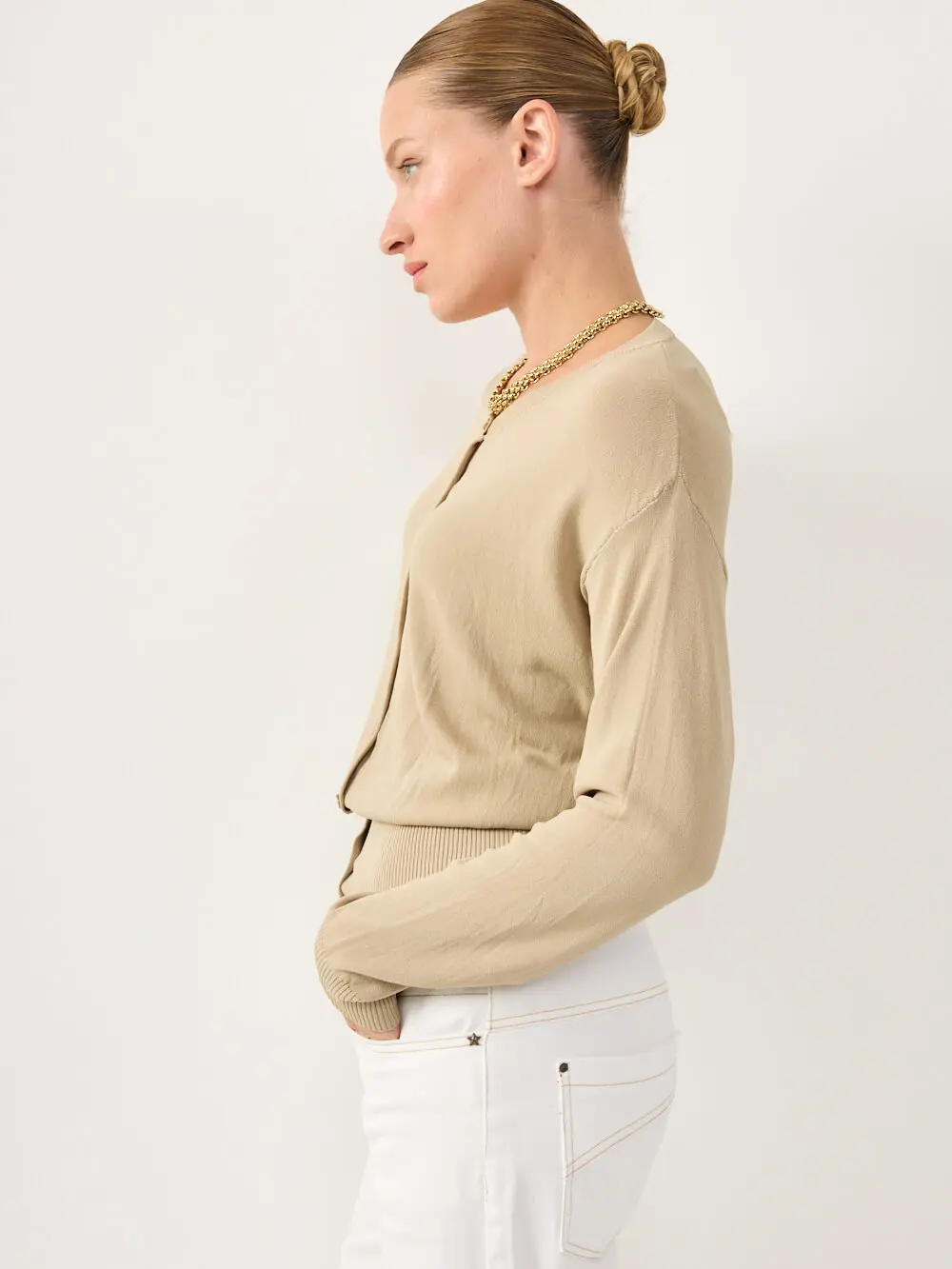 סריג קרדיגן נעים עם כפתורים ומפתח עגול