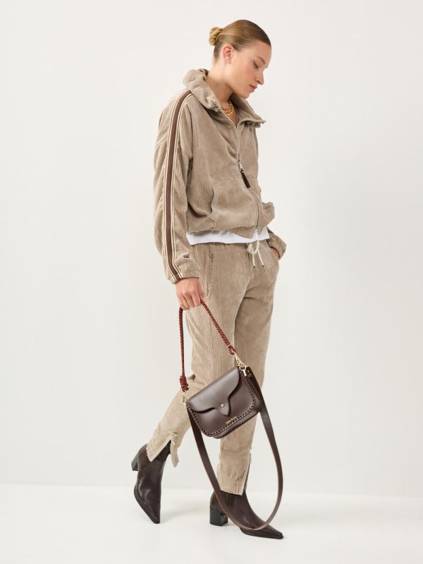 הג׳קט כולל כיסים קדמיים, שרוולים רחבים ומכפלת עם גומי עדין לנוחות מושלמת ולמראה מחמיא.