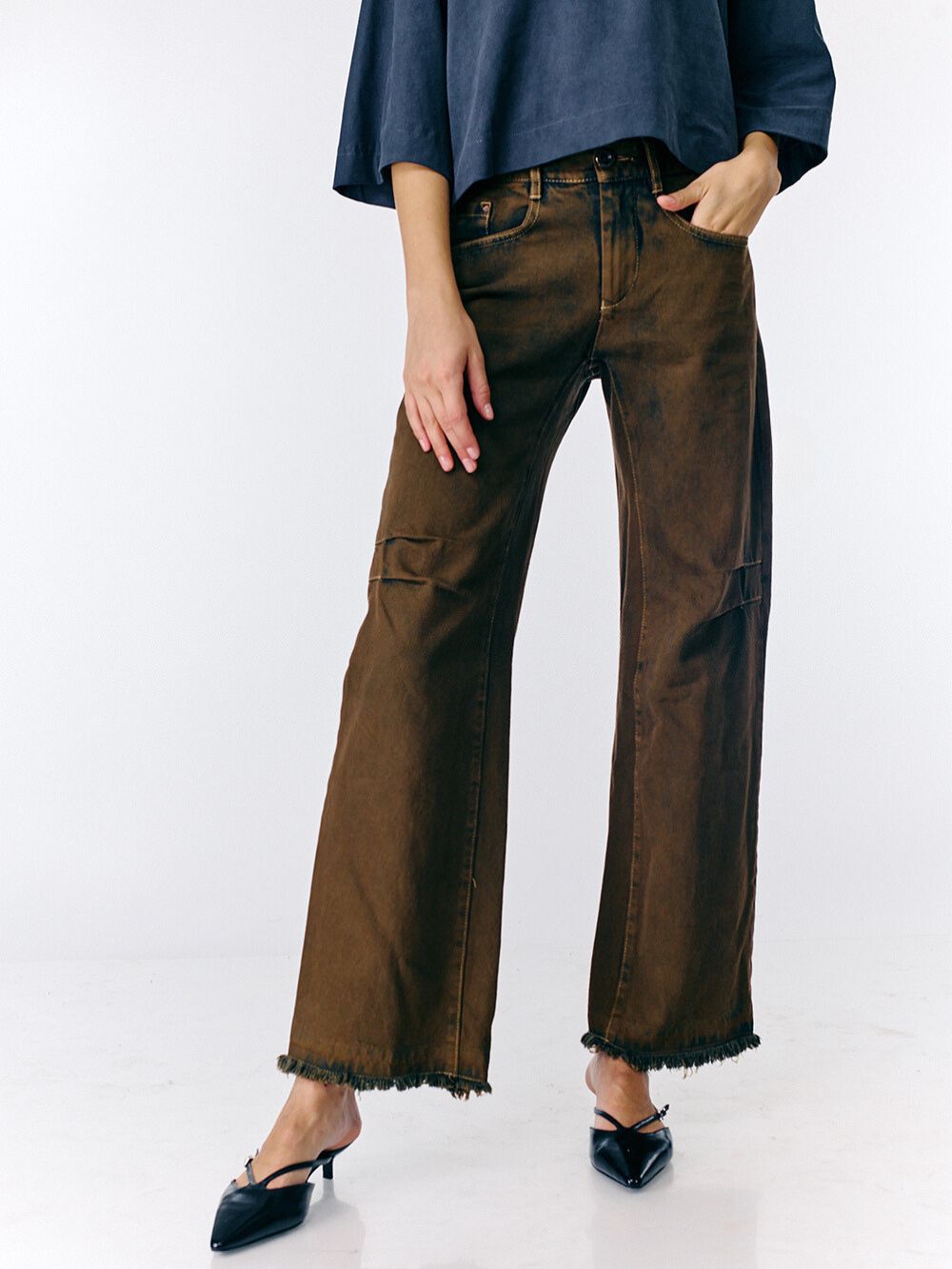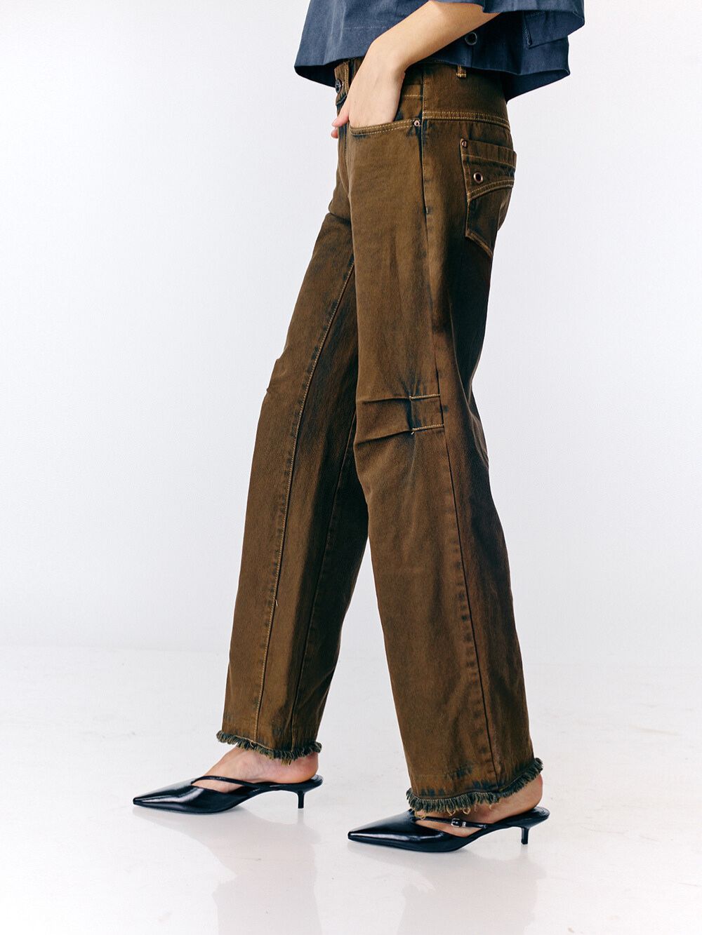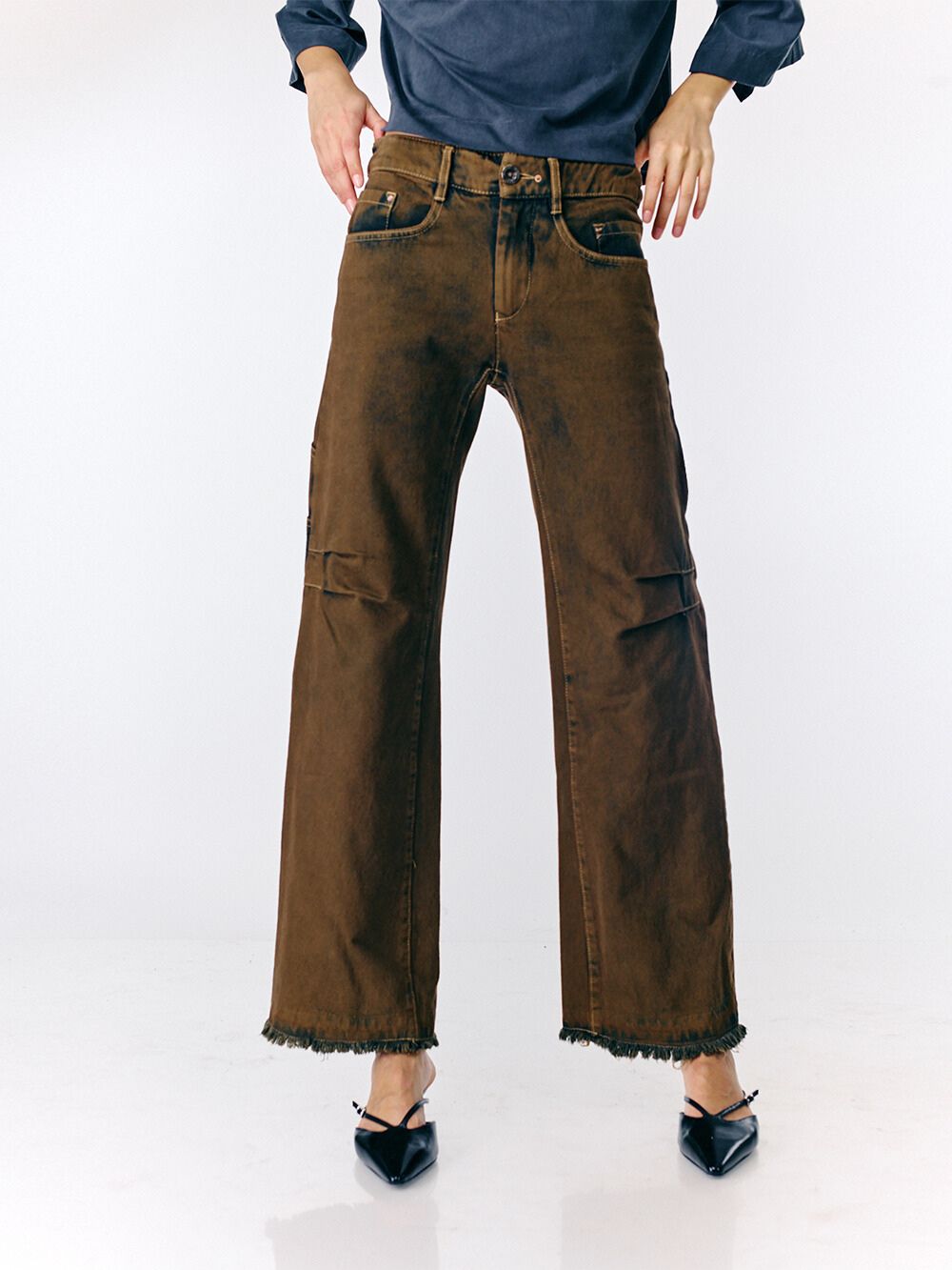 שימי לב! בשונה מהתמונה הג׳ינס הסופי הוא עם כפתרה חיצונית.