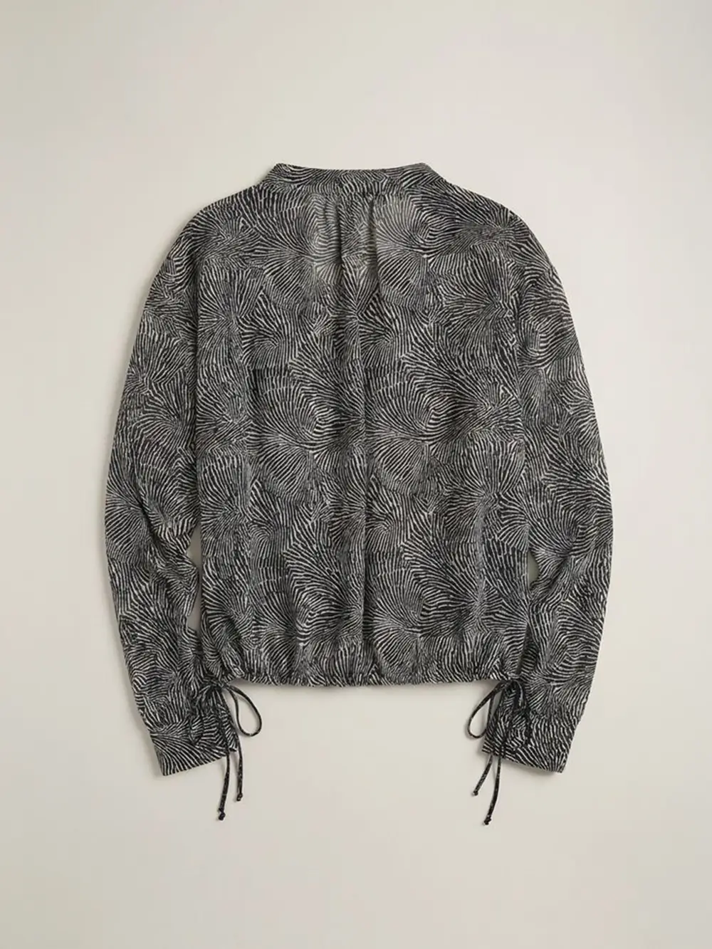 חולצת השיפון EDEN שלנו בגזרה קלאסית ורכה, עשויה מבד שיפון נשפך ועדין למגע, מקושט אבנים קטנות מנצנצות על גבי כל הבד, עם מפתח וי קליל וסגירת כפתורים חלקית.