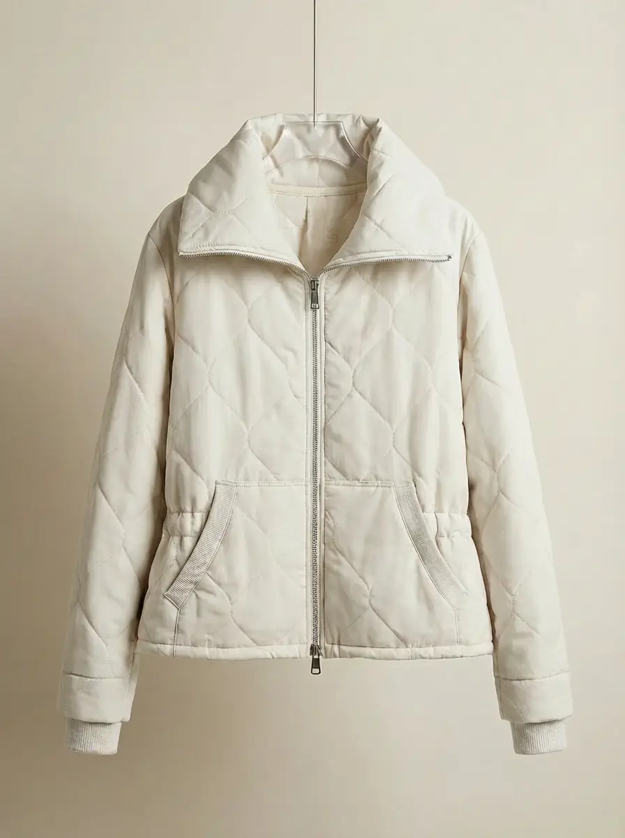 מעיל קווילט בגזרה מחמיאה עם מותן מודגשת וצווארון גדול