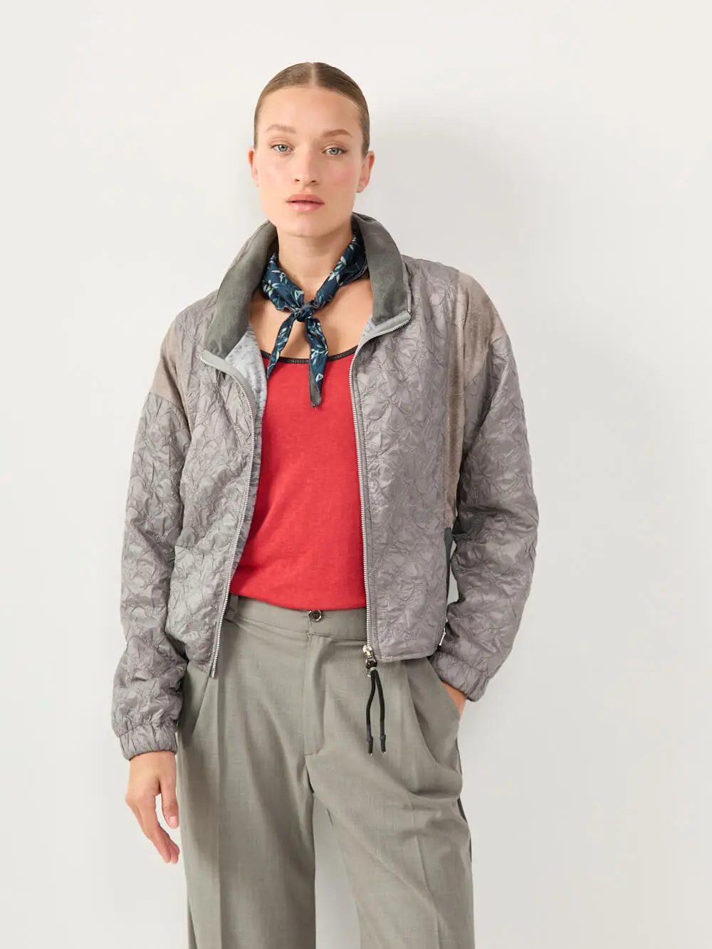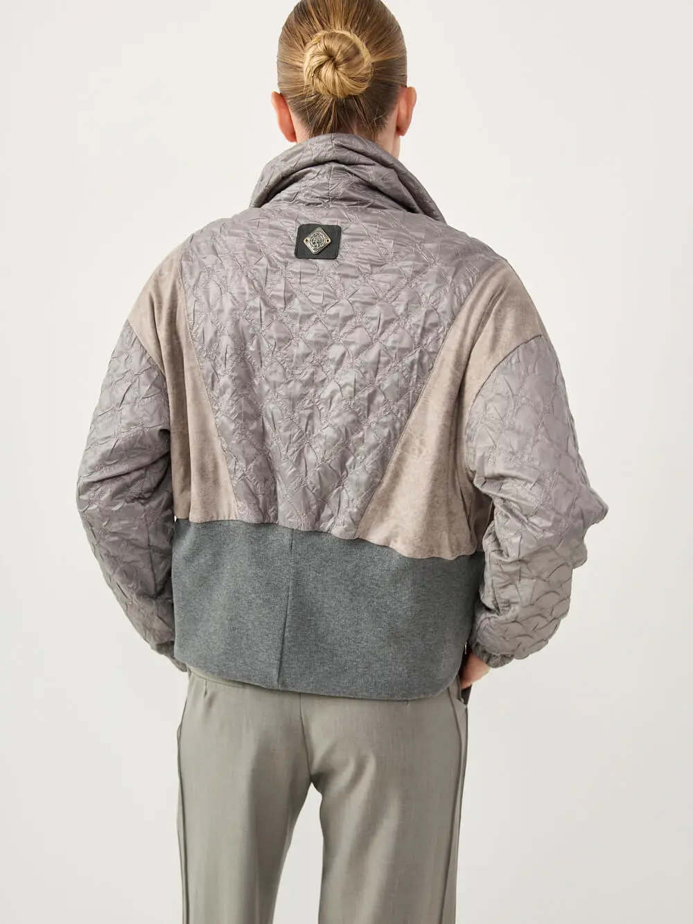 ג׳קט אלגנטי בעיצוב ייחודי ומעודן עם שילוב הרמוני של בדים ומרקמים.