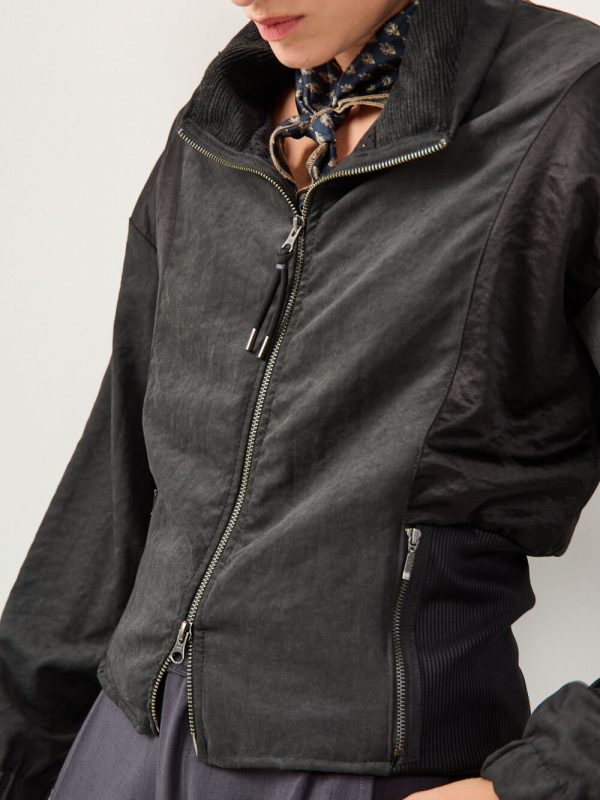 הדגם כולל צווארון גבוה, סגירת רוכסן קדמית כפולה וגומי עדין במותן ובשרוולים – לנוחות מושלמת ולסילואטה מחמיאה.