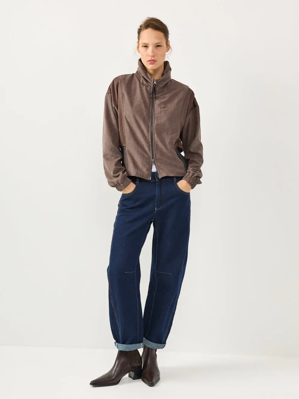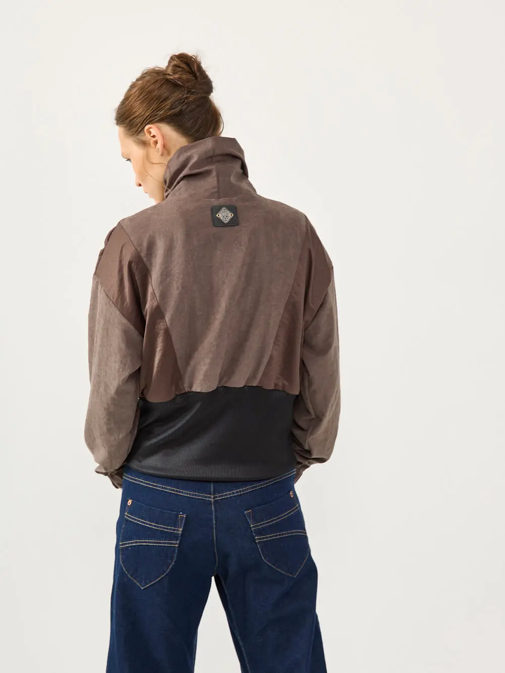 ג׳קט אלגנטי בעיצוב ייחודי ומעודן עם שילוב הרמוני של בדים ומרקמים.