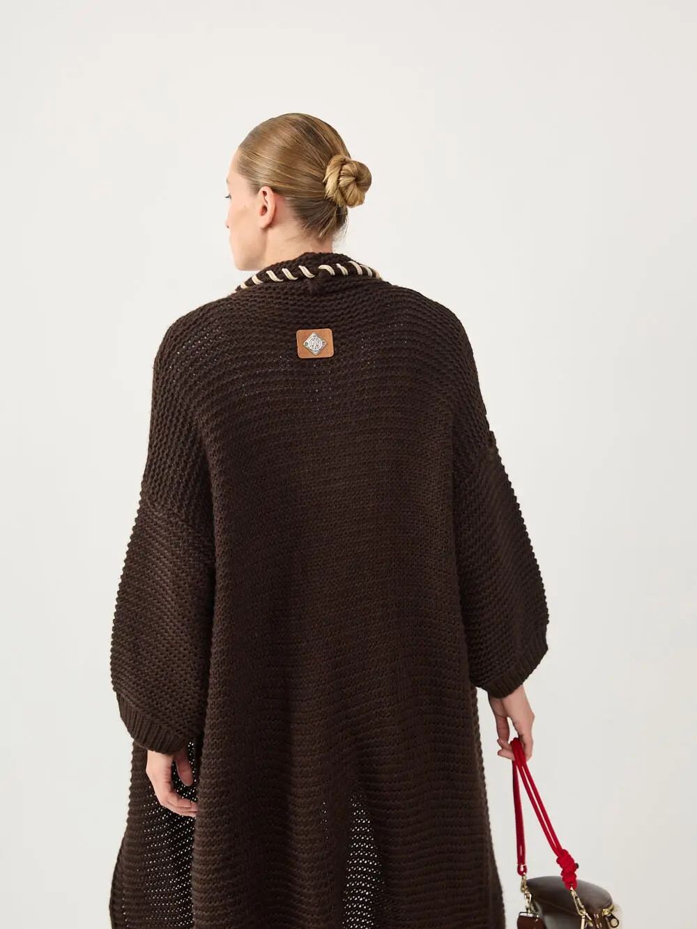 קרדיגן ארוך ומרשים בגזרה רכה ונשפכת, עשוי סריג חורפי עבה ונעים למגע.