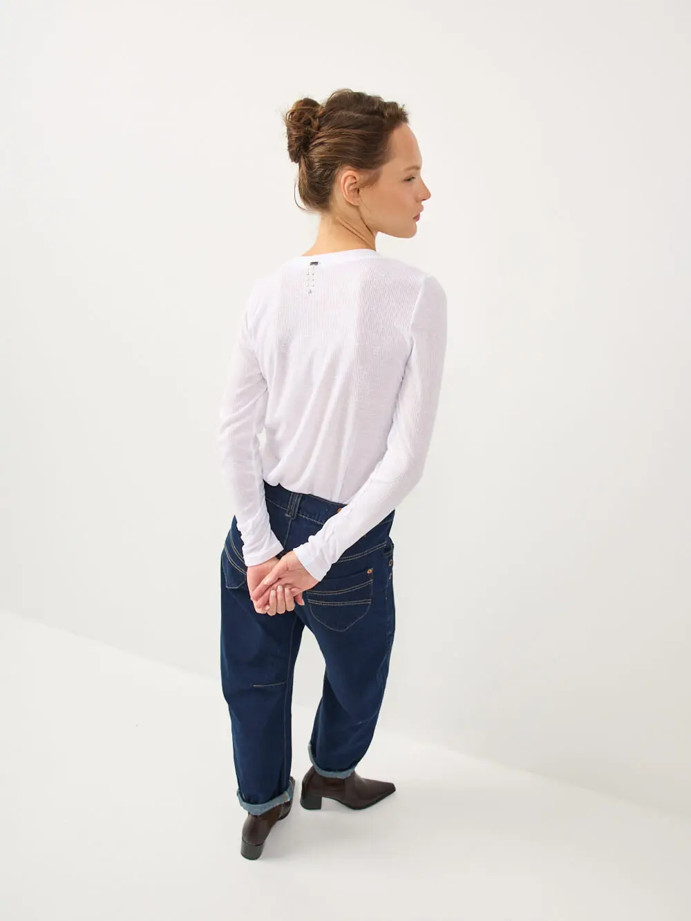 חולצת טי ארוכת שרוול בגזרה נינוחה, עשויה בד רך ונעים עם פסים עדינים.