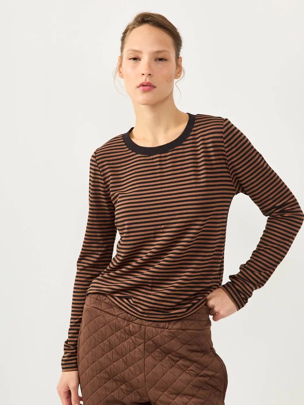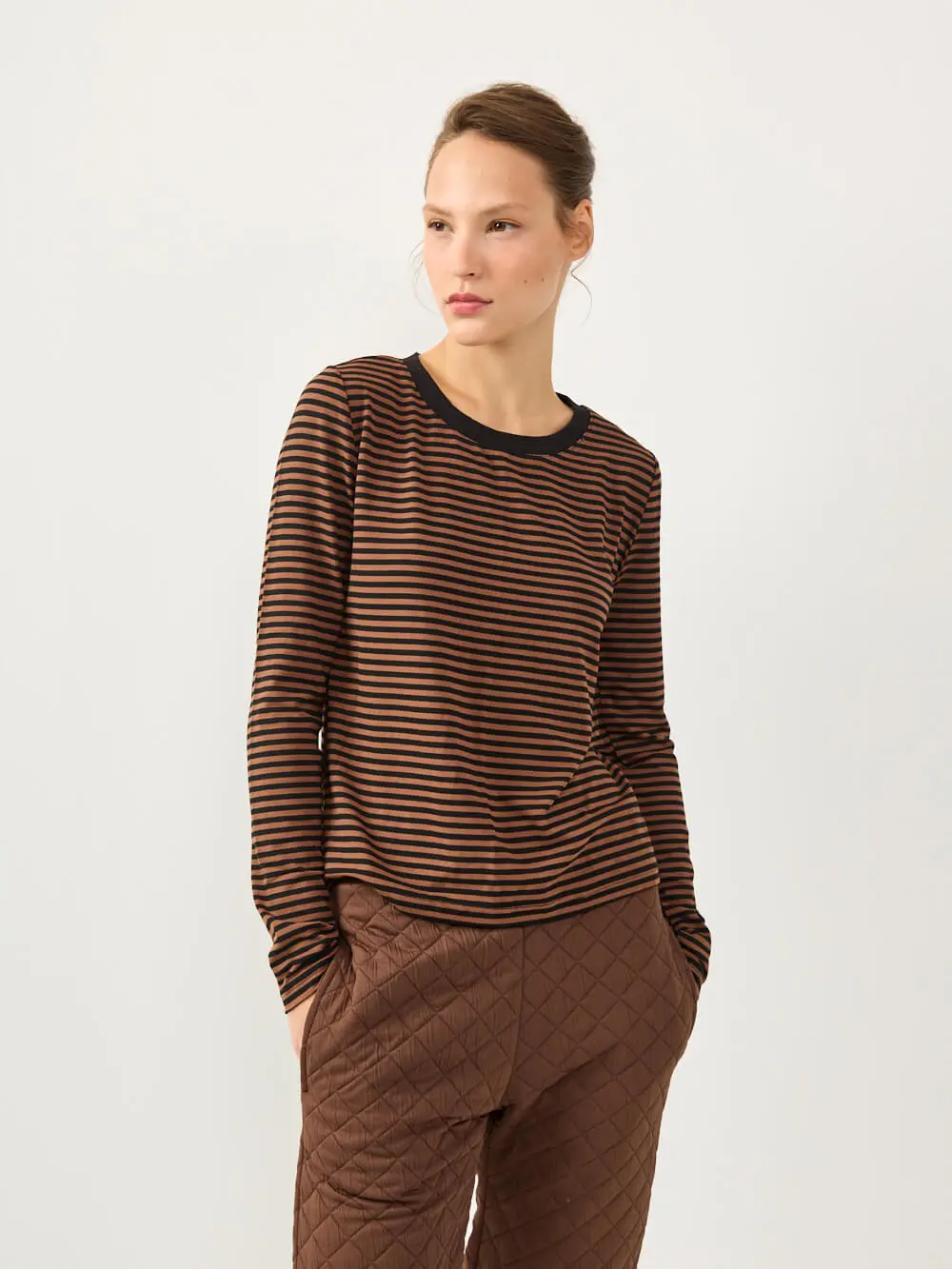 חולצת טי ארוכת שרוול בגזרה נינוחה, עשויה בד רך ונעים עם פסים עדינים.