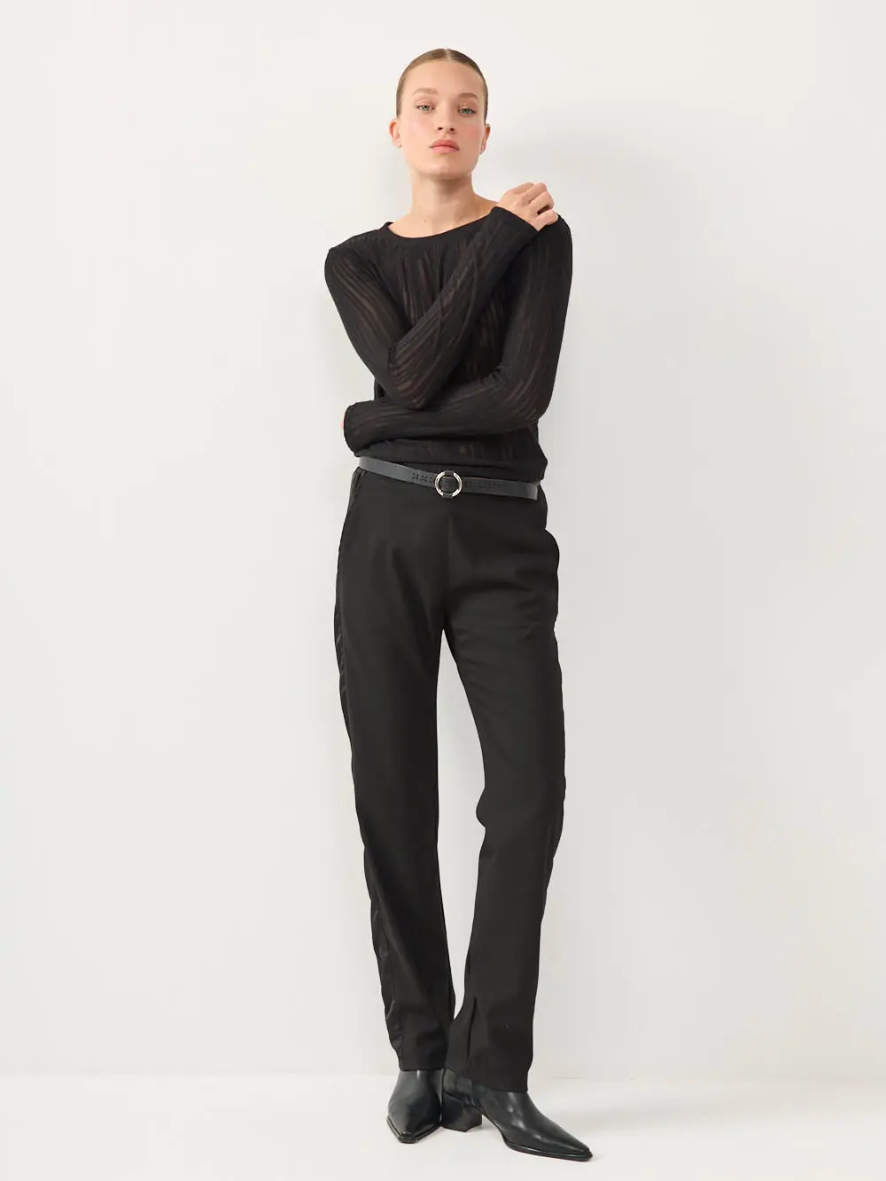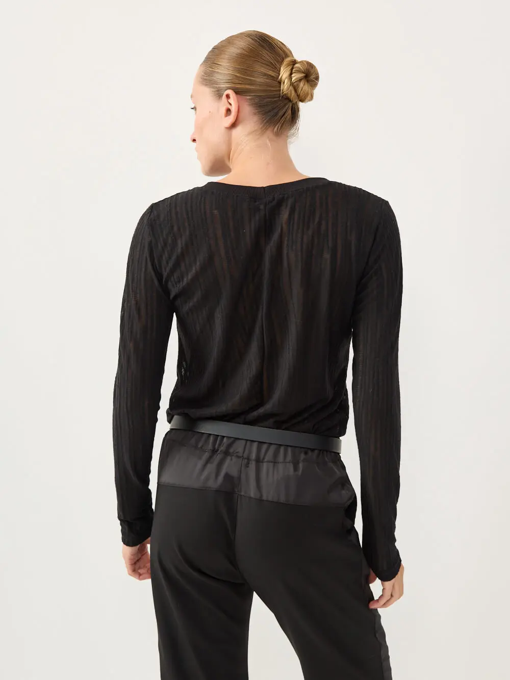 חולצת טי ארוכת שרוול מבד שקפקף עם טקסטורת פסים עדינה.