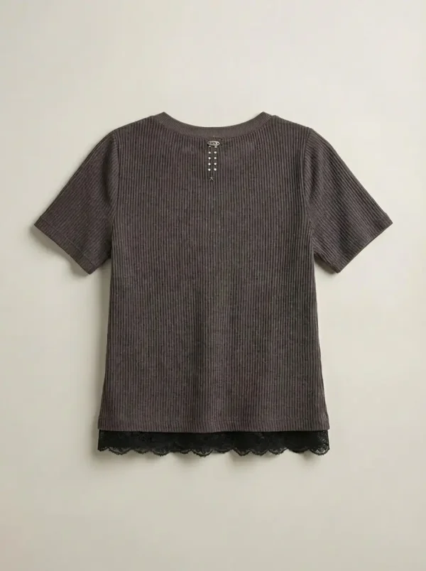 NIKI LACE TSHIRT | חום שוקולד