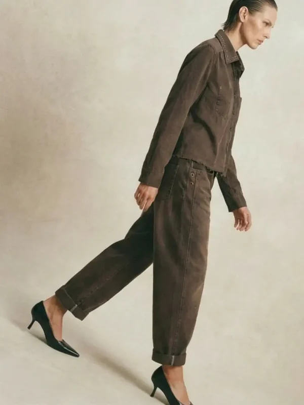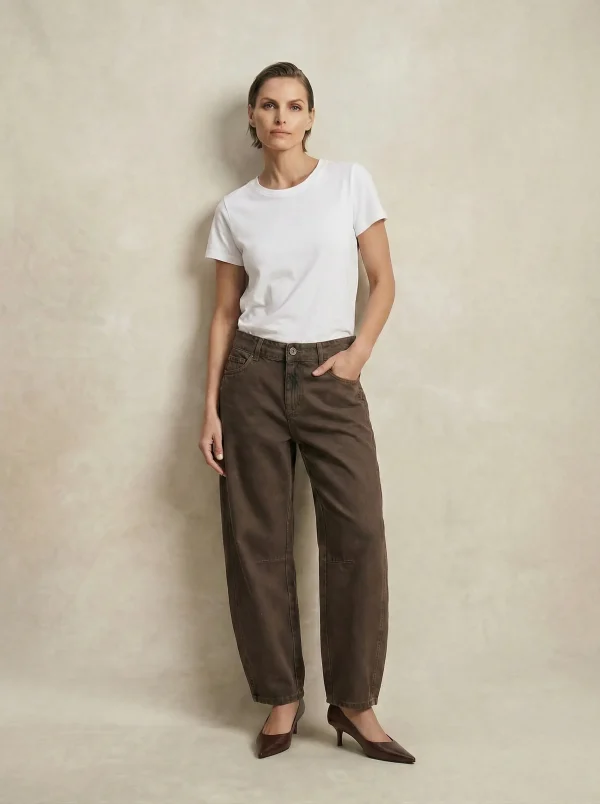 NOA'S BARREL JEANS | חום כהה